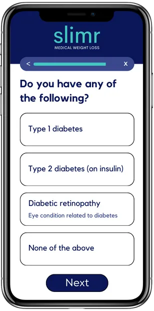 After carefully reviewing your medical history, your Slimr provider will select either semaglutide or tirzepatide with the proper weekly dosage, if approved. Through continued telehealth visits, your support team will help manage your weight loss safely and effectively.